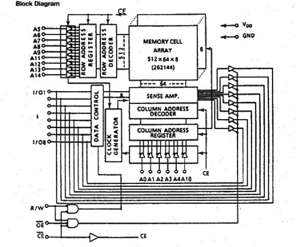 The TC55257CFI-85L is a 262,144 bit CMOS static random access memory organized as 32,768 words by 8 bits and operated from a single 5V power supply. Advanced circuit techniques provide both high speed and low power features with an operating current of 5ma/mhz and a minimum cycle time of 85ns.